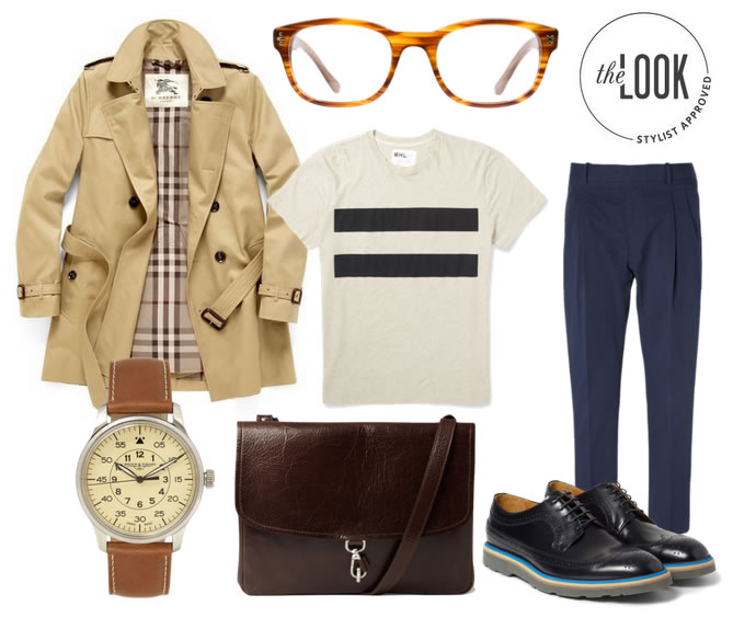 Instead of pairing this classic Burberry trench with a formal work wear suit, we went with a block print black/white t-shirt and cotton-blend trousers from Marni. We like the idea of dressing down a trench coat for a dressy casual look that’s fit for everyday wear.